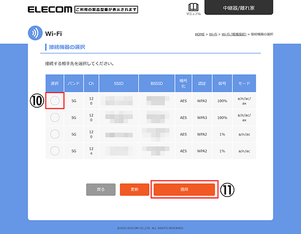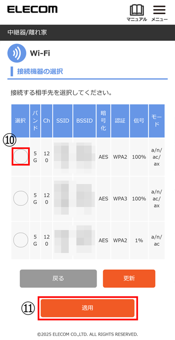 ⑩お使いのルーターのSSID(Wi-Fi名)が表示されたら、選択します。