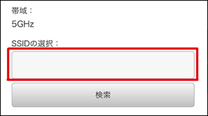 ただし、弊社としては5GHzおよび2.4GHzの両帯域を設定されることを推奨しています。⑧スクロールし、5GHzのSSIDの「検索」をタップします。