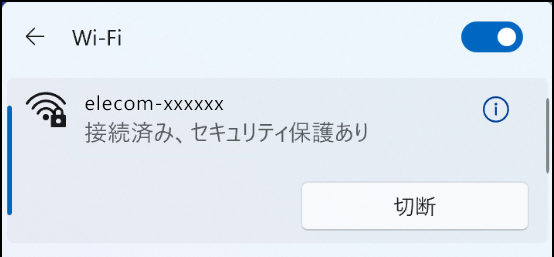 ②本製品のSSID(Wi-Fi名)を選択し、暗号化キー(Wi-Fiパスワード)を入力して接続します。