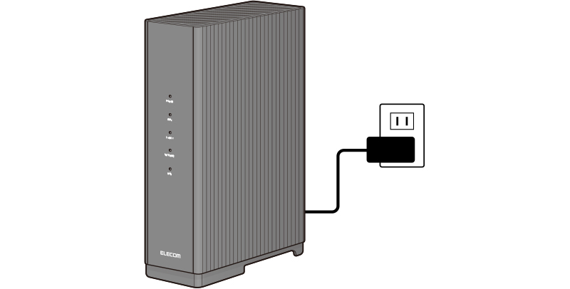 本製品にACアダプターをつなぎ、つづいてコンセントに接続します。