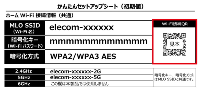 お使いのルーターの情報を同梱の「かんたんセットアップシート(初期値)」に記載してお使いください。本製品の重要な情報です。大切に保管してください。