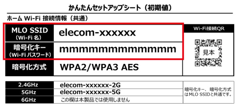 ※Wi-Fi接続情報=SSID(Wi-Fi名)、暗号化キー(Wi-Fiパスワード)-