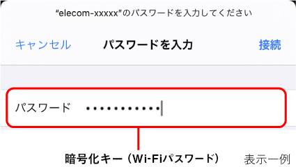 ②本製品の暗号化キー(Wi-Fiパスワード)を入力します。