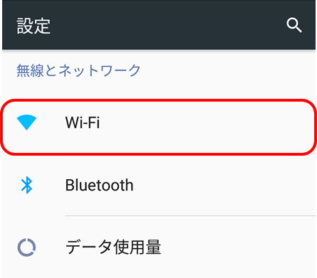 ①お手持ちの端末を操作し、SSID(Wi-Fi名)の一覧を表示させ、本製品のSSID(Wi-Fi名)を選択します。