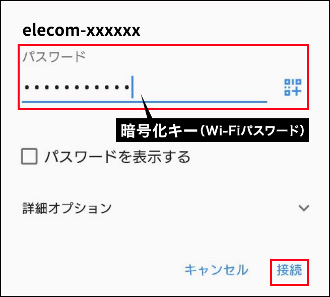 暗号化キー(Wi-Fiパスワード)を入力