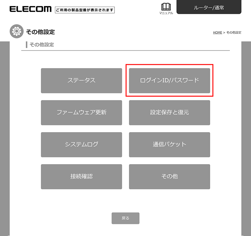 「その他設定」画面が表示されますので、「ログインID/パスワード」を選択します。