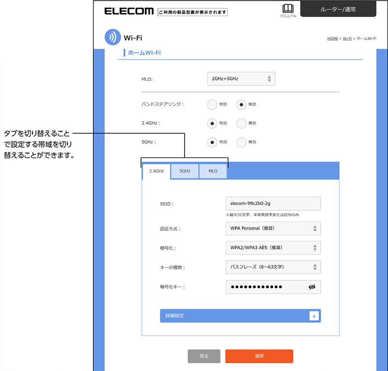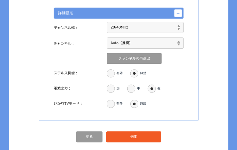 詳細設定(2.4Ghz、5GHzのみ)