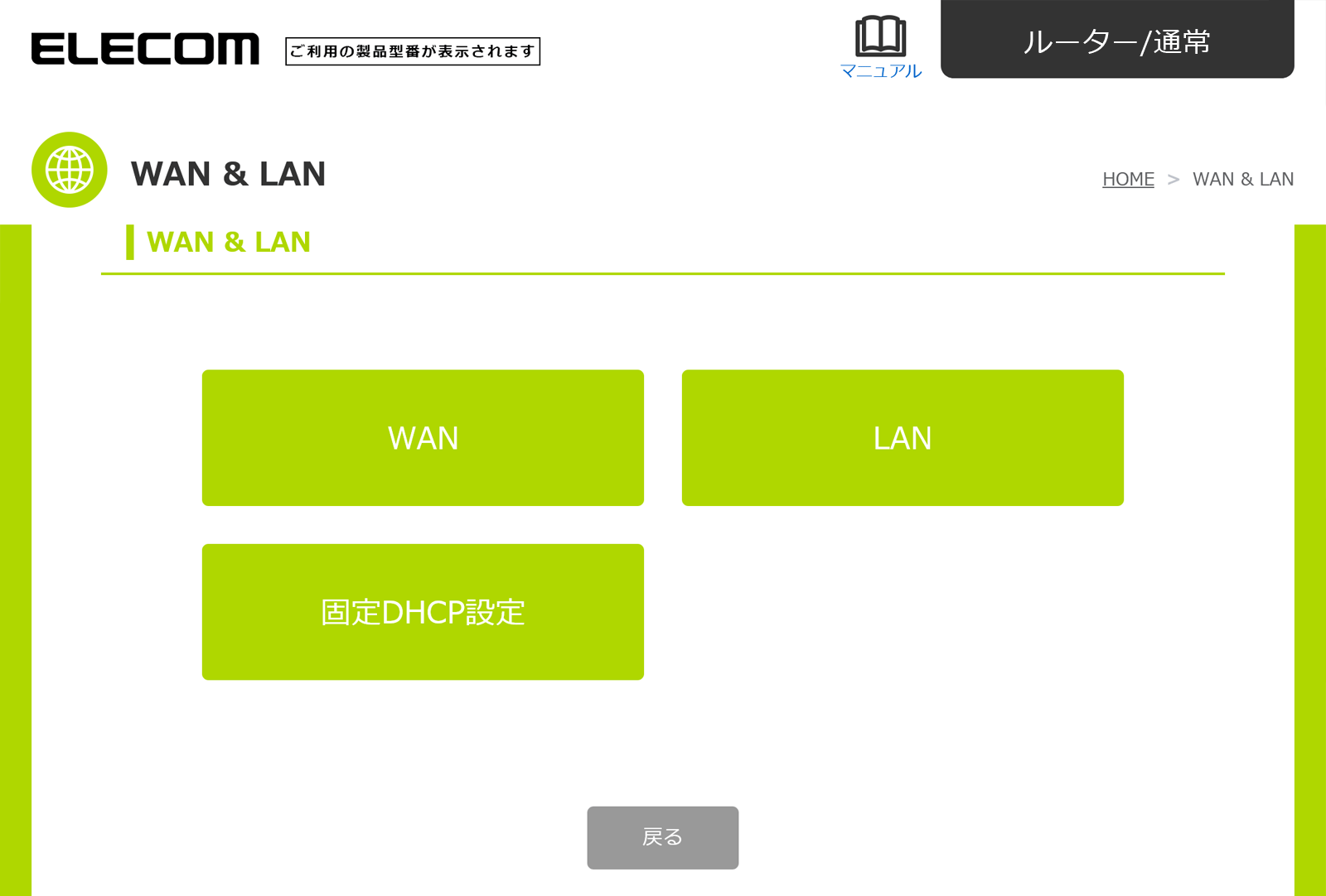 WAN(インターネット)回線やLANの設定ができます。この項目はルーターモード時のみ設定可能です。