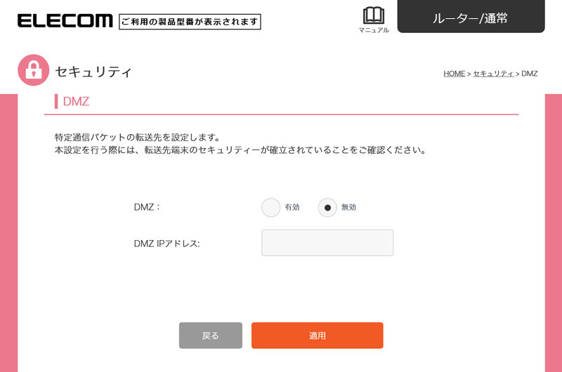 セキュリティ > DMZを利用したい