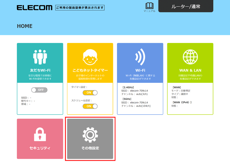 設定画面(管理画面)のHOME画面から「その他設定」を選択します。