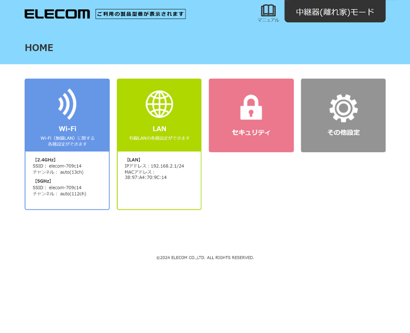 本製品を中継器としてインターネットに接続する > 手動でお使いのルーターに中継器(離れ家)モードで接続する