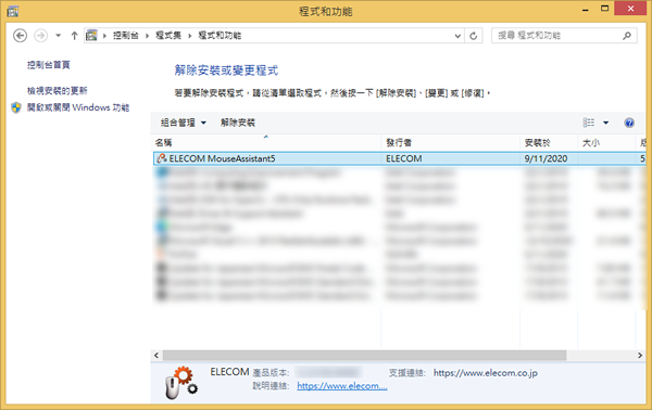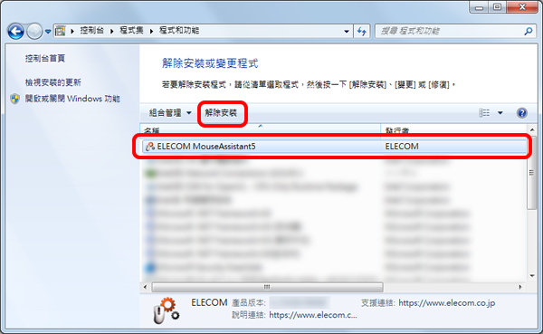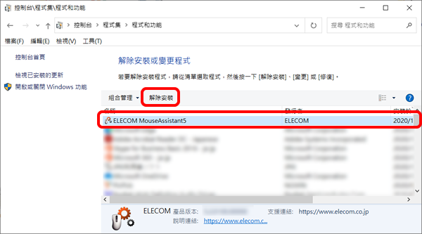 點擊如上圖所示的「ELECOM Mouse Assistant 5」,然後點擊「卸載」按鈕。