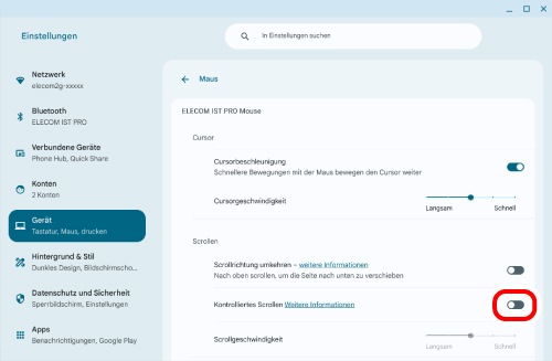 Sie müssen den „ELECOM Mouse Assistant 6“ von unserer Website installieren, um die linke und rechte Bildlauffunktion unter Windows nutzen zu können. Siehe „ELECOM Mouse Assistant 6 installieren“.