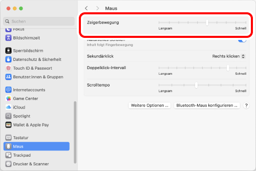 ⑪ Schalter zum Ändern der Zeigergeschwindigkeit