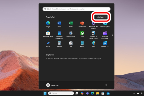 6) Klicken Sie auf „Start“ und dann auf „Alle Apps“.