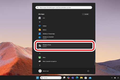 Der Bildschirm „Windows Tools“ wird angezeigt.