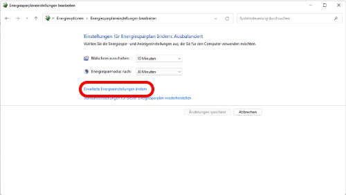 7) Klicken Sie auf „Energiesparplaneinstellungen ändern“ rechts neben dem unter „Energieplan“ ausgewählten Element.