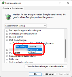⑨ Bitte überprüfen Sie die Energiespareinstellungen für das angeschlossene Gerät. (Wenn Sie einen Windows®-PC verwenden.)