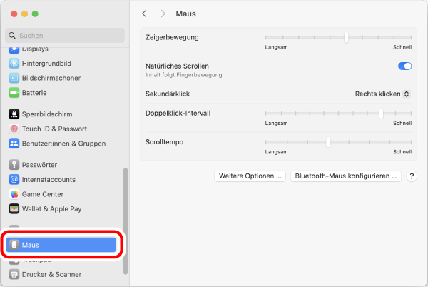 Die Seite mit den Einstellungen für die „Maus“ wird geladen.