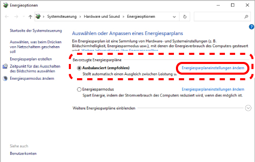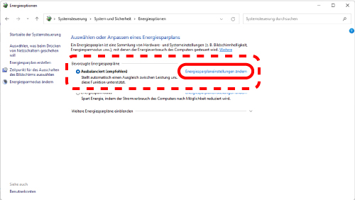 7) Klicken Sie auf „Energiesparplaneinstellungen ändern“ rechts neben dem unter „Energieplan“ ausgewählten Element.