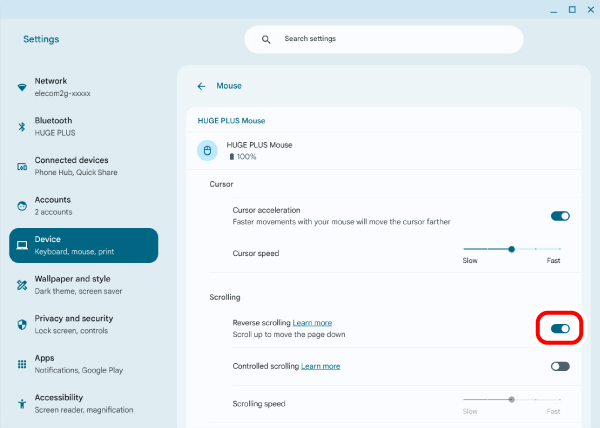You will need to install the “ELECOM Mouse Assistant 6” from our website to use the left and right scroll function on Windows. Refer to “Install ELECOM Mouse Assistant 6”.