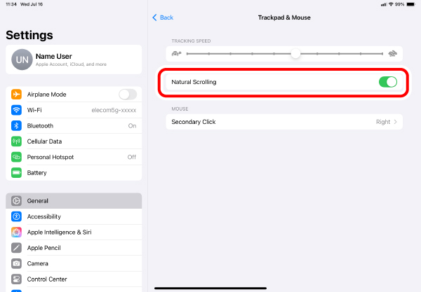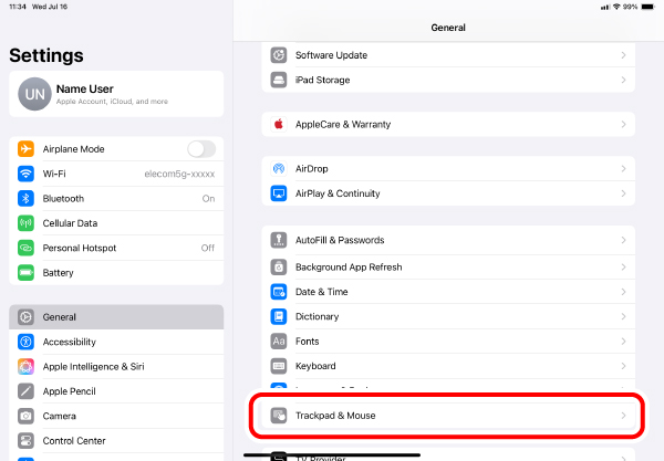 *Turning off the power when the trackball is not used for a long period of time can extend the battery life.