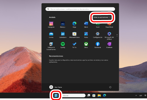 6) Haga clic en "Inicio" y luego en "Todas las aplicaciones".