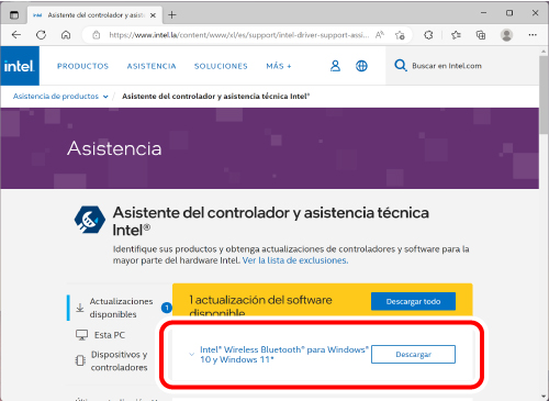 9) Descargue "Intel® Wireless Bluetooth" de la lista si está disponible.
