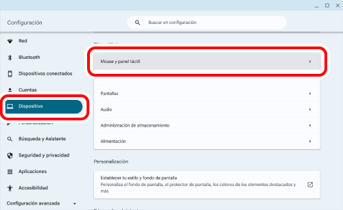 3) Haga clic en "Mouse y panel táctil" en "Dispositivo".