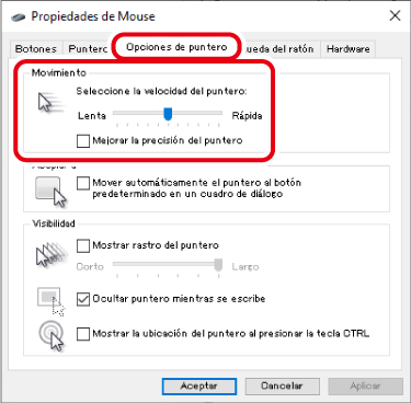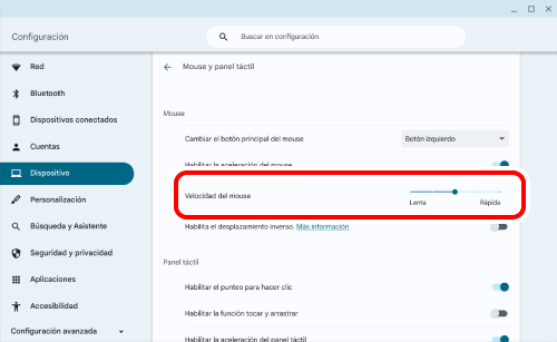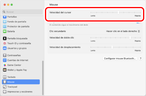 4) Ajuste el control deslizante "Velocidad del mouse" para ajustar la velocidad del puntero del mouse.