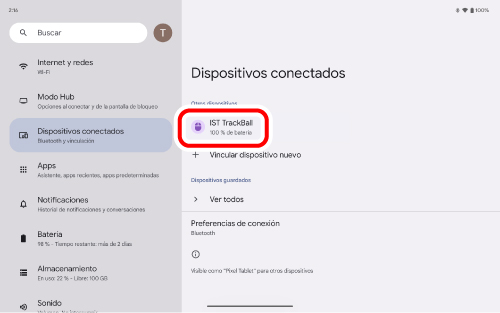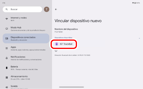 5) Haga clic en "IST TrackBall" que aparece en "Dispositivos disponibles".