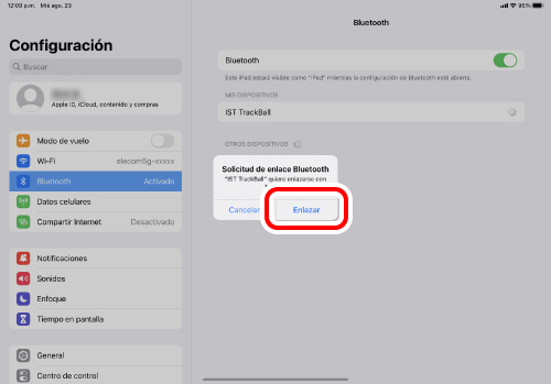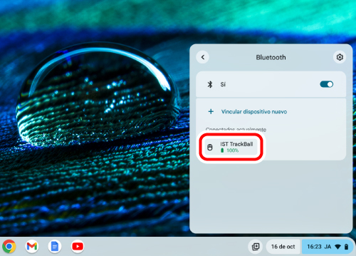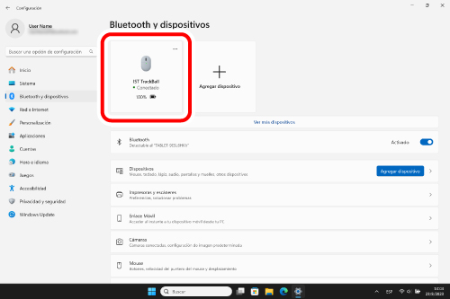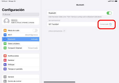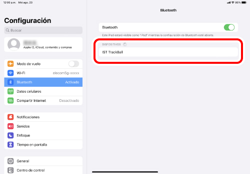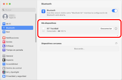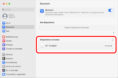 Haga clic en "Bluetooth" como en el paso 2. La vinculación se completa cuando aparece "IST TrackBall" en "Conectados actualmente".