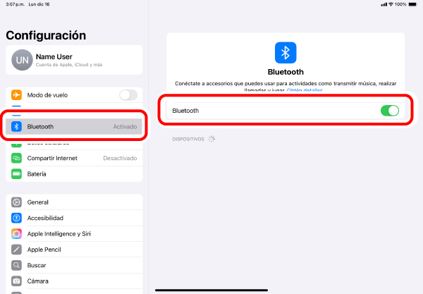 ③ Compruebe la conexión Bluetooth.