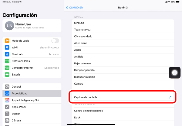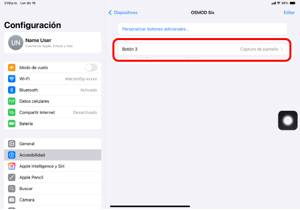 Las funciones se pueden asignar a este botón. En el momento de la compra, no se han asignado funciones.