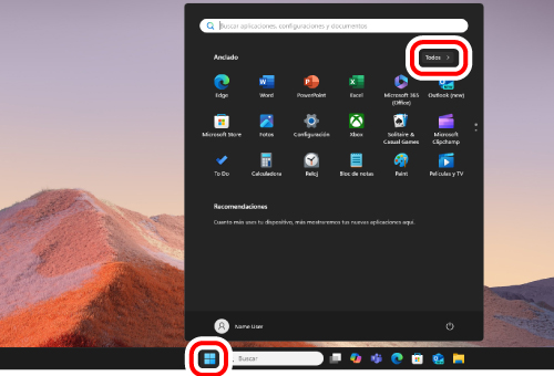 6) Haga clic en “Inicio” y luego en “Todos”.