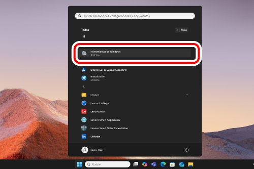 Aparecerá la pantalla “Herramientas de Windows”.