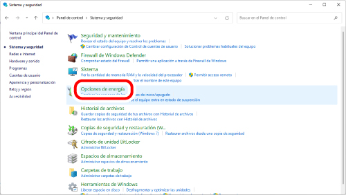 6) Haga clic en “Opciones de energía”.