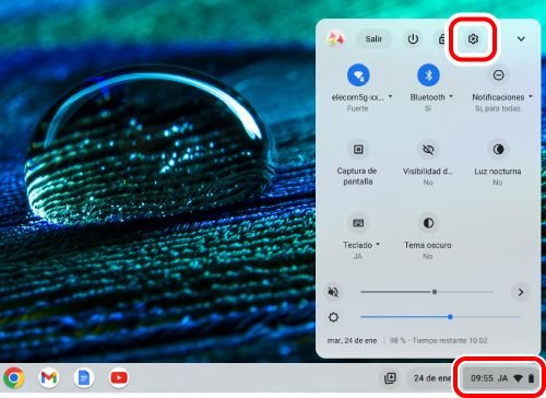 1) Haga clic en el panel de ajustes rápidos situado en la parte inferior derecha.