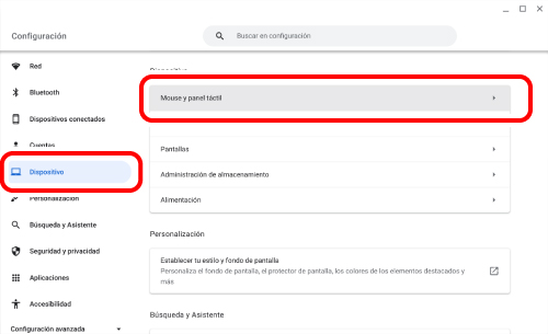 3) Haga clic en "Mouse y panel táctil" en "Dispositivo".