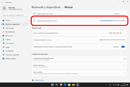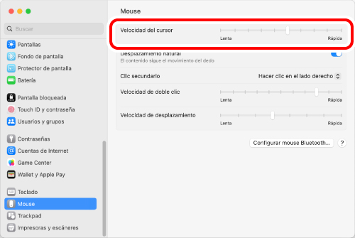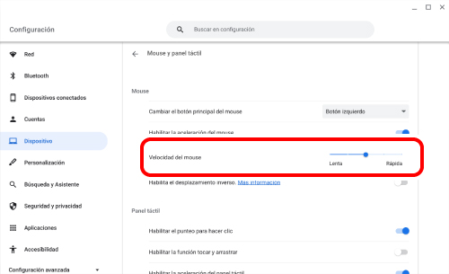 4) Ajuste el control deslizante "Velocidad del mouse" para ajustar la velocidad del puntero del mouse.
