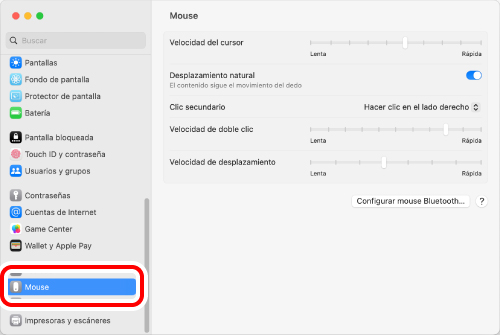 *Si se cambia la configuración del sistema operativo, los botones de clic izquierdo y clic derecho también se intercambiarán por otros mouse utilizados simultáneamente en la misma computadora. Utilice la función de asignación de funciones en ELECOM Mouse Assistant para intercambiar los botones solo en este producto.⇒"Instalar ELECOM Mouse Assistant"