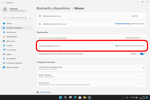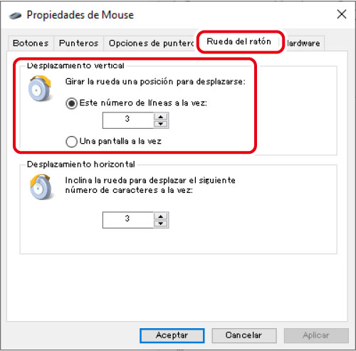 Cambiar el número de líneas que se desplazan en un giro de la rueda