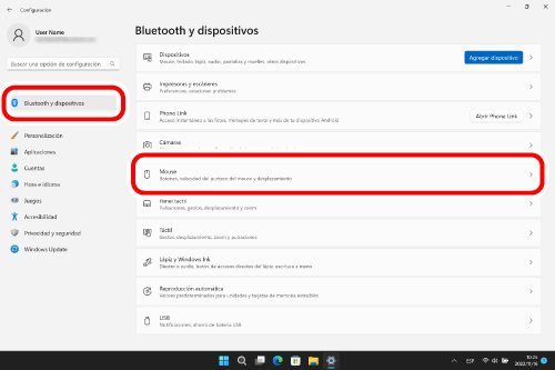 2) Haga clic en "Bluetooth y dispositivos" y, a continuación, en "Mouse".