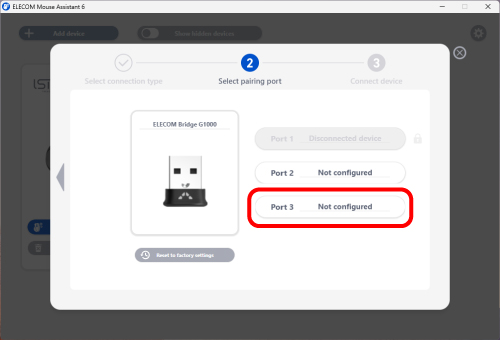 5) Sélectionnez le port de connexion sous « Select pairing port ».