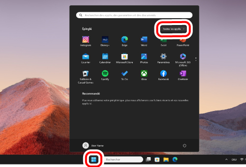6) Cliquez sur « Démarrer » et ensuite sur « Toutes les applis ».