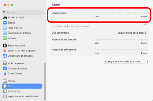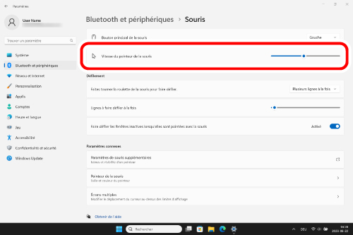 4) Réglez le curseur « Vitesse de la souris » pour ajuster la vitesse du pointeur de la souris.