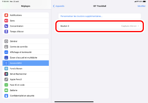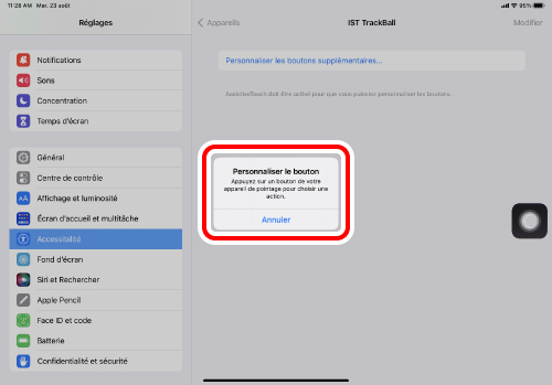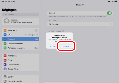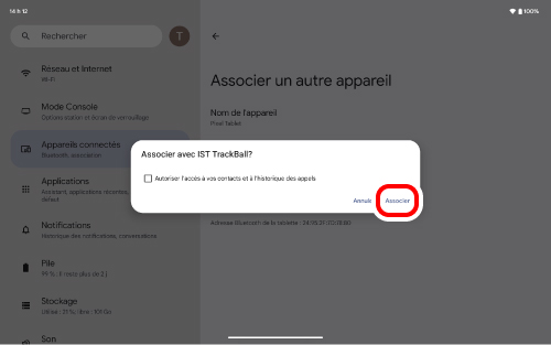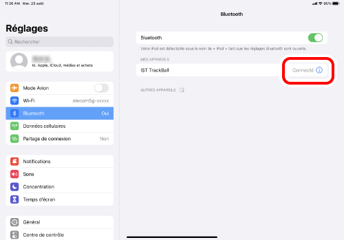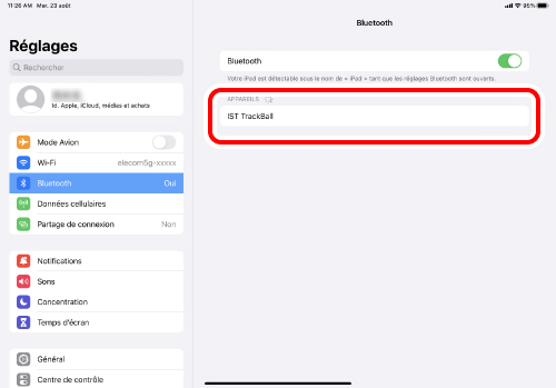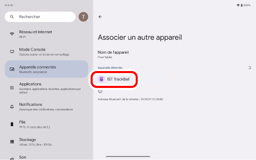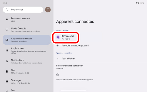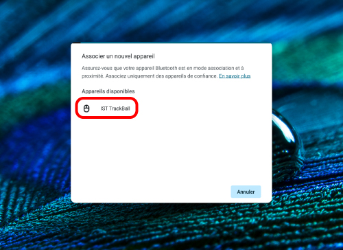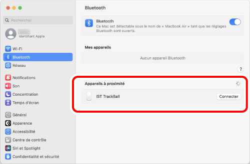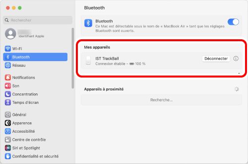 Cliquez sur « Bluetooth » comme à l'étape 2. Le jumelage est terminé lorsque « IST TrackBall » apparaît sous « Actuellement connectés ».