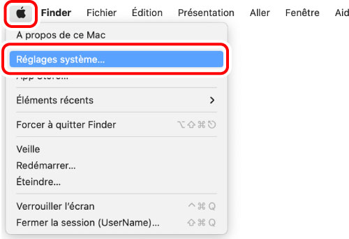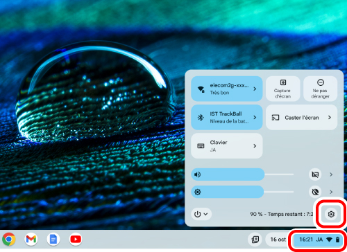 (réglages) dans le panneau des réglages rapides.