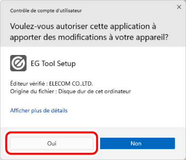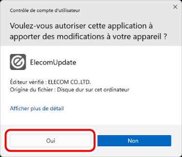 Cliquez sur le bouton « Oui » lorsque la fenêtre « Contrôle de Compte d’Utilisateur » apparaît.