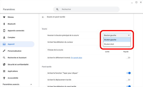 Les boutons de clic gauche et de clic droit peuvent être échangés sur votre PC.